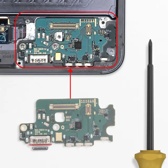 Samsungov polnilni priključek za hitro in stabilno polnjenje telefona Galaxy S25. Originalna vrata USB-C za popolno združljivost z originalnimi kabli. Bralnik SIM, spajkan na trak za optimalno upravljanje omrežja. Vgrajen mikrofon za snemanje zvoka med klici in snemanjem.