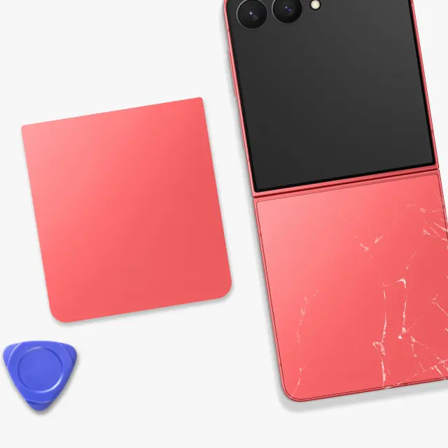 Spodnji pokrov baterije je popolnoma združljiv s telefonom Samsung Galaxy Z Flip7. Originalni del servisnega paketa Samsung, v originalni obliki in izvedbi. Zadnja površina iz koralno rdečega stekla za videz, ki je enak originalnemu zadnjemu delu. Posebna zasnova spodnje polovice, prilagojena zložljivemu okvirju in poravnavi robov.