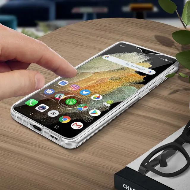 Ultra odporen ovitek za Samsung Galaxy S21 Ultra. Ta integralni ovitek za Galaxy S21 Ultra ponuja 360° zašcito zahvaljujoc svojemu togemu zadnjemu delu in prozorni upogljivi zašciti zaslona. Lastnosti zaslona ostanejo nespremenjene.