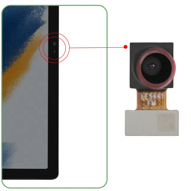 Samsung, Sprednja kamera za Samsung Galaxy Tab A8 10.5 Senzor za selfije 5 MP, originalni servisni paket, Črna