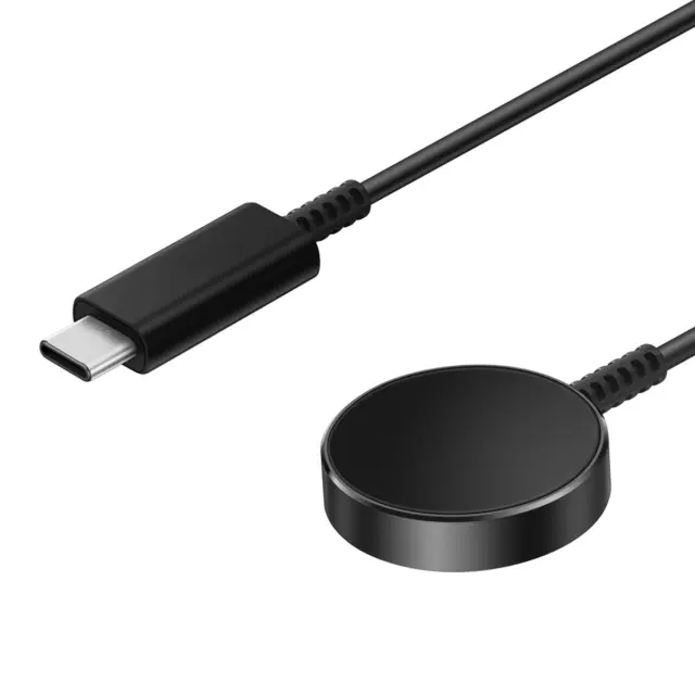 Ta magnetni polnilec z okroglim magnetnim modulom polni povezane ure Galaxy Watch3 / 4 / 5 / 5 Pro / Active / Active2.. Polnilni modul vsebuje magnet, ki med polnjenjem samodejno drži uro na mestu.. Največji izhod 5 V / 2 A zagotavlja stabilno napajanje ure med polnjenjem. Priključek USB-C omogoča napajanje prek omrežnega polnilnika, prenosnega računalnika ali priklopne postaje USB..