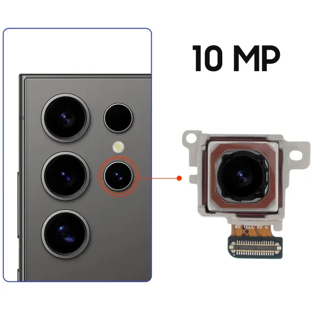 Samsung, Zadnja kamera za Samsung Galaxy S24 Ultra Teleobjektiv 10 MP, 3-kratna povečava, originalni servisni paket, Črna