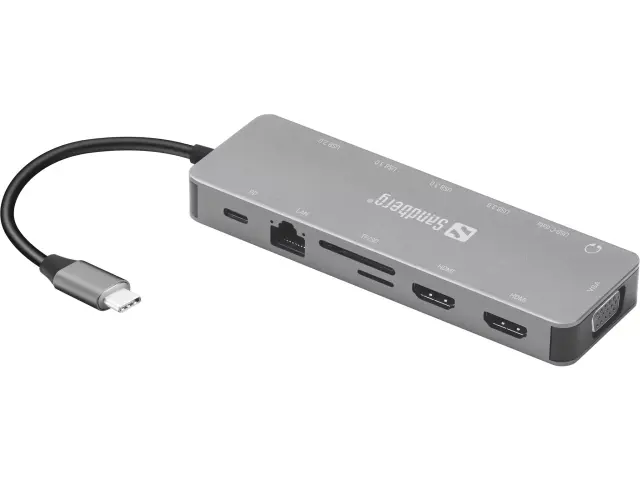 Z le eno povezavo USB-C z vašim prenosnikom vam priklopna postaja Sandberg USB-C 13-in-1 Travel Dock daje možnost povezave vse vaše opreme: