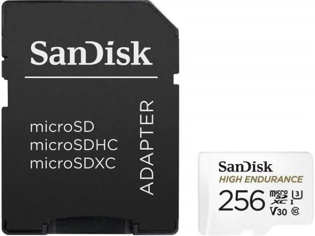 Kartica SanDisk® High Endurance microSD™ z oznako razreda 10 in video hitrostjo U3 in V304 omogoča snemanje v Full HD ali 4K.