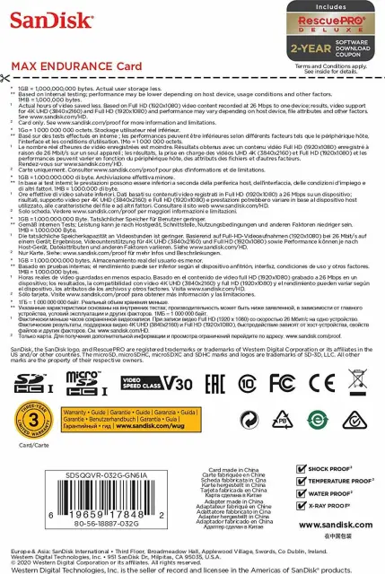 Ker morate včasih posneti posnetke v manj kot idealnih pogojih, je kartica SanDisk MAX ENDURANCE microSD odporna na temperaturo, vodo, udarce in rentgenske žarke.2