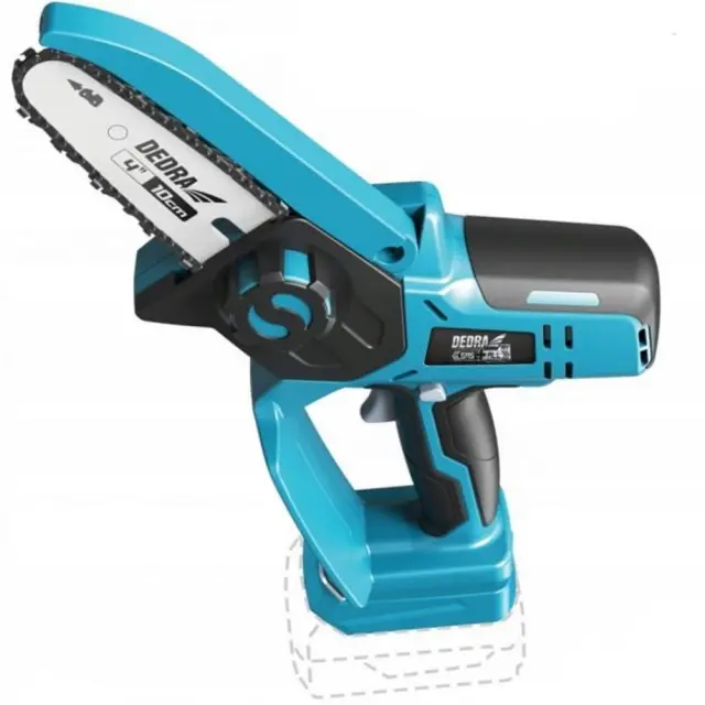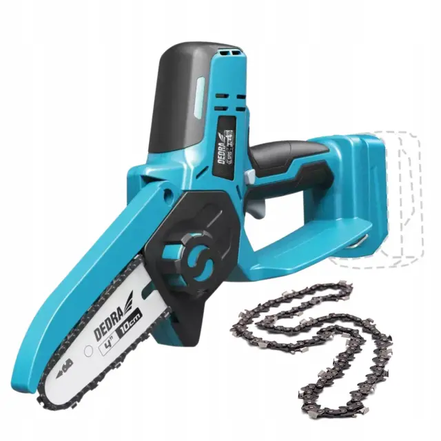 18V akumulatorska verižna žaga 100mm je opremljena z močnim motorjem, ki zagotavlja visoko hitrost rezanja in učinkovito obdelavo lesa. S 100mm dolgo verigo in rezilom, bo ta žaga kos tudi debelejšim vejam in manjšim drevesom.