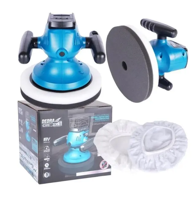 Polirka je nepogrešljivo orodje vsakega avtomehanika, slikopleskarja ali restavratorja. Polirni stroji so uporabni tudi v primerih, ko želite osvežiti površino kovine, npr. pri poliranju jeklenih delovnih površin ali elementov iz nar avnega kamna, kot so stopnice, tla, okenske police itd. Ekscentrični rotacijski polirnik DEDRA DED7084 iz serije SAS+ALL se napaja z enim 18V akumulatorjem, ki lahko napaja vse stroje iz serije SAS+ALL. Zaradi tega je polirka polnopravno orodje in ne odveč en pripomoček, ki ga je treba po prvi uporabi zavreči. Velika povprečna velikost blazinice (250 mm) in ekscentrično-rotacijsko gibanje zagotavljata enakomerno obdelavo obdelane površine. Stroj je opremljen z varnostnim stikalom, ki preprečuje nenameren zagon tudi med prevozom s pritrjenim strojem. Udobni ergonomski ročaji na obeh straneh enote zagotavljajo enakomeren pritisk brez nevarnosti preobremenitve le enega roba enote. Oba ročaja sta nastavljiva, tako da ju lahko prilagodite svojim potrebam in si de lo še bolj olajšate. Ročaji so prevlečeni z gumo za večje udobje in varnejši oprijem tudi po daljši uporabi. Stikalo za vklop/izklop je nameščenona desnem ročaju za lažje upravljanje.