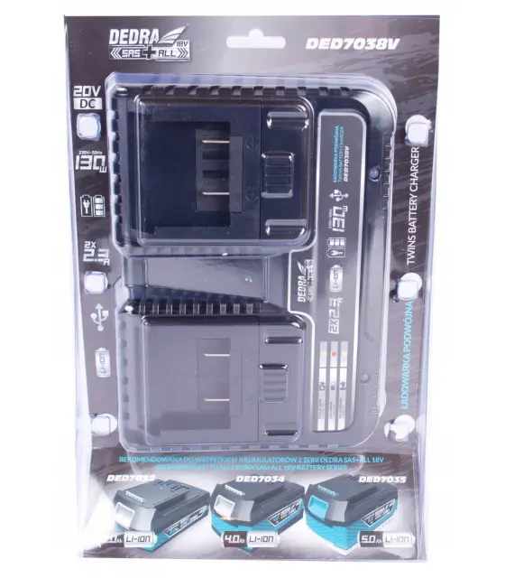 Polnilec za dve bateriji za elektronsko orodje DEDRA SAS+ALL