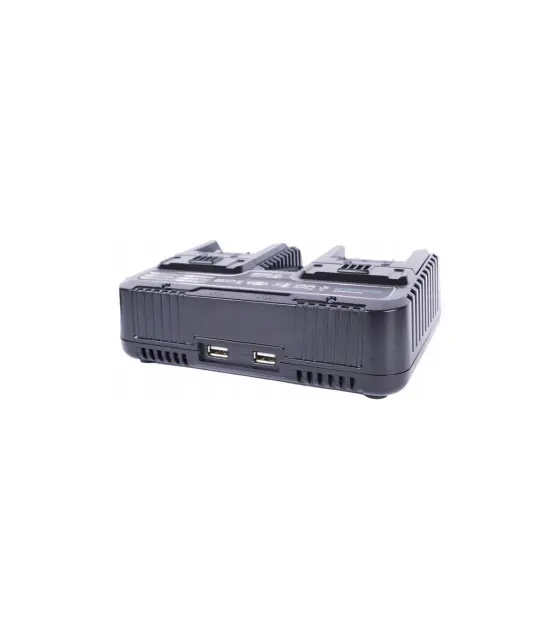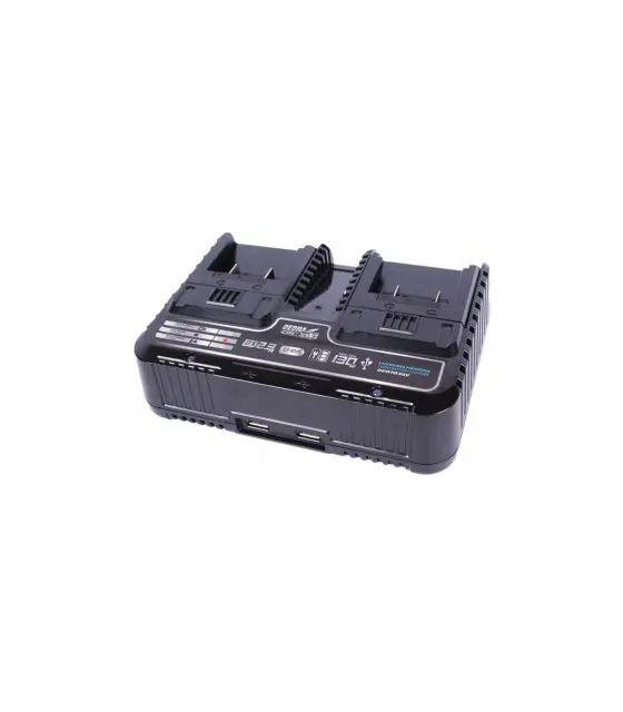 To je namenski izdelek za polnjenje baterij iz linije SAS+ALL. Baterijo zzmogljivostjo 2,0 Ah lahko napolnite v eni uri, baterijo z zmogljivostjo 4,0 Ah pa v dveh urah. Z dvema polnilnima vtičnicamalahko baterije polnite še učinkoviteje. Polnilec je opremljen s tremi diodami LED: ena označuje, da so baterije priključene na električno omrežje, druga, da poteka polnjenje, in tretja, da je polnjenje končano. Z dvema vtičnicama USB lahko priključite pametni telefon ali zvočnik Bluetooth.
