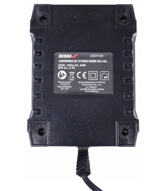 Taizdelek je namenjen polnjenju baterij iz linije SAS+ALL (DED7032, DED7034, DED7035, DED6936, DED6937). Baterijo 2,0 Ah lahko napolnite v eniuri, baterijo 4,0 Ah v dveh urah, baterijo 5,0 Ah pa v dveh urah in 20 minutah. Polnilec je opremljen z dvema diodama LED: ena obvešča o priključitvi na električno omrežje, druga pa o končanem polnjenju baterije.