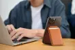 Satechi, MagSafe ohišje za kartice za iPhone s funkcijo usnjenega držala, Oranžna