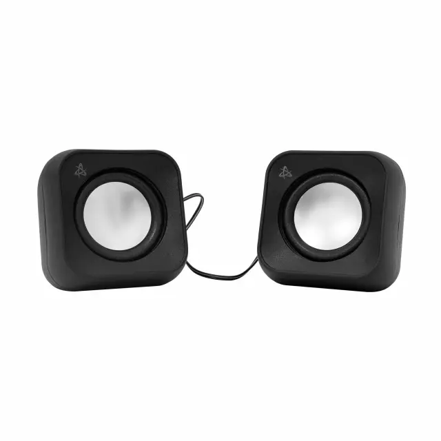 Zvočnika 2.0 Stereo v črni barvi zagotavljata jasen zvok in eleganten dizajn. Z 2,2 W (RMS) izhodno močjo na zvočnik, ponujata frekvenčni odziv od 100 Hz do 20 kHz za bogato zvočno izkušnjo. S/N razmerje ≥80 dB zagotavlja čist zvok brez motenj. Izdelana iz trpežne plastike s 3,5 mm stereo + USB vmesnikom za enostavno povezavo. Kompaktna velikost in lahka zasnova omogočata prenos in postavitev kjerkoli.