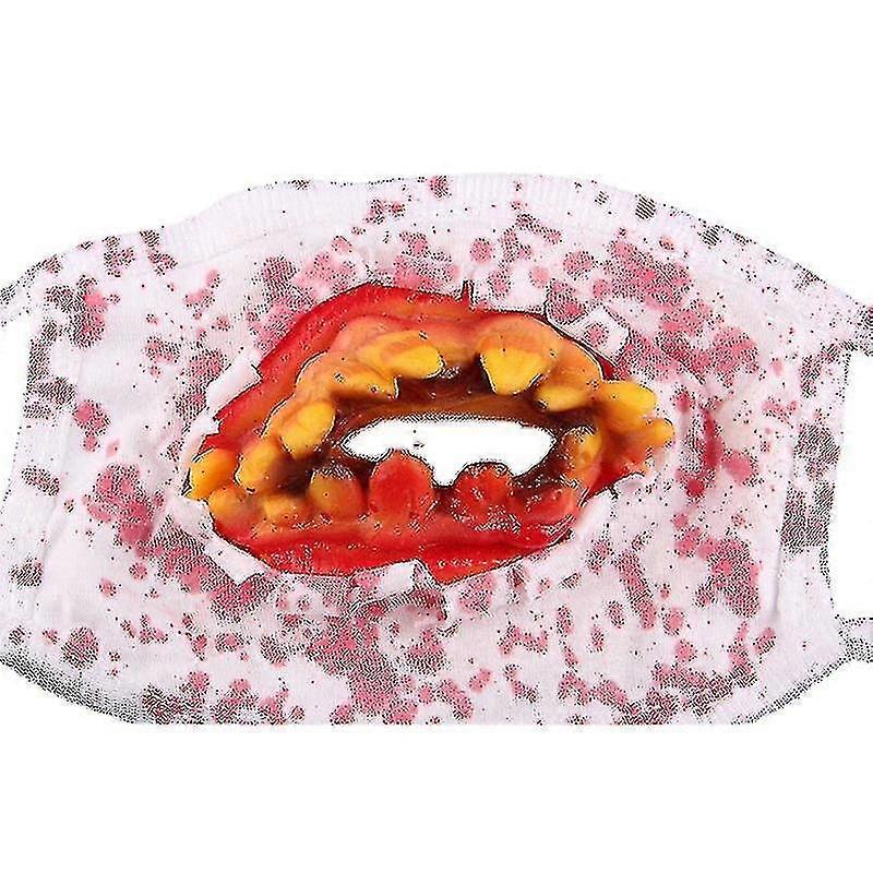 Scary Horror Face Mouth Muffle Halloween Bloody Teeth Maska za dihanje Happy Halloween Party Rekviziti, okras za noč čarovnic (2 kosa)