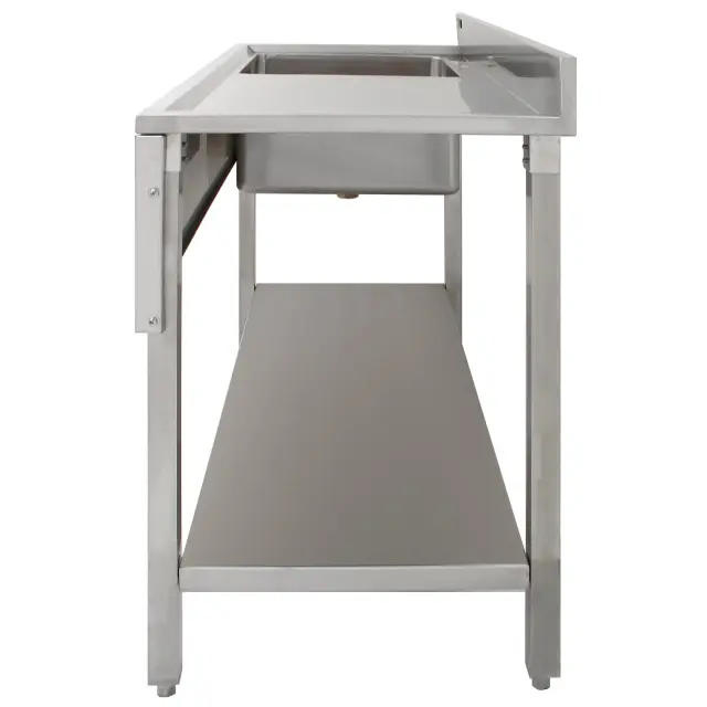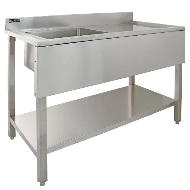 * Mere 120 cm v širino x 60 cm v globino x 90 cm v višino (delovna višina ne vključuje dviga). Pomivalna korita iz nerjavečega jekla so popolna za vse vrste kuhinj (zlasti za živahno komercialno okolje), zato jih je izjemno enostavno vzdrževati čista, kar pomeni, da so super higienična. Poleg tega zaščita proti škropljenju preprečuje, da bi se stvari ujamele za umivalnikom.