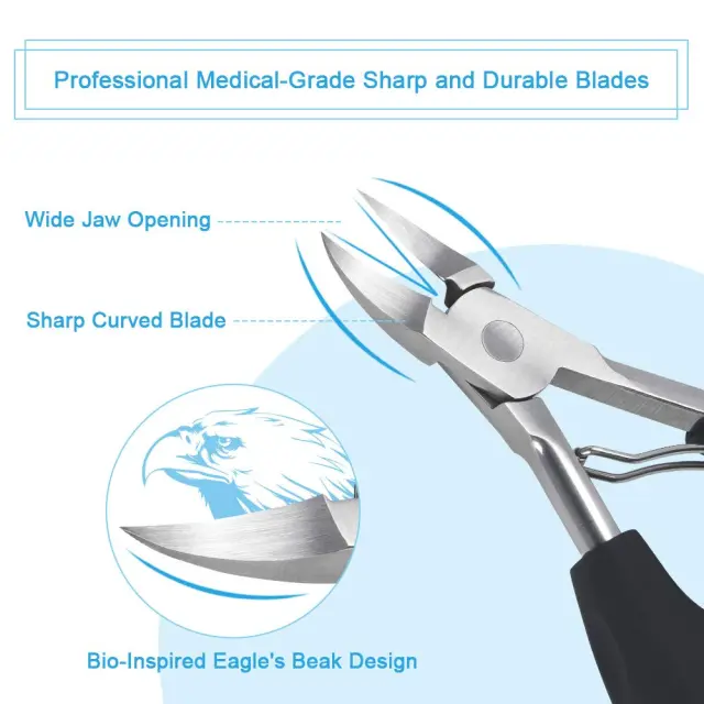 Zmogljivo ščipalko za nohte iz nerjavečega jekla, ki vam pomaga brez napora rezati debele, trde ali vraščene nohte na nogah. Ergonomski ročaj iz trpežne ABS plastike zagotavlja varen oprijem.