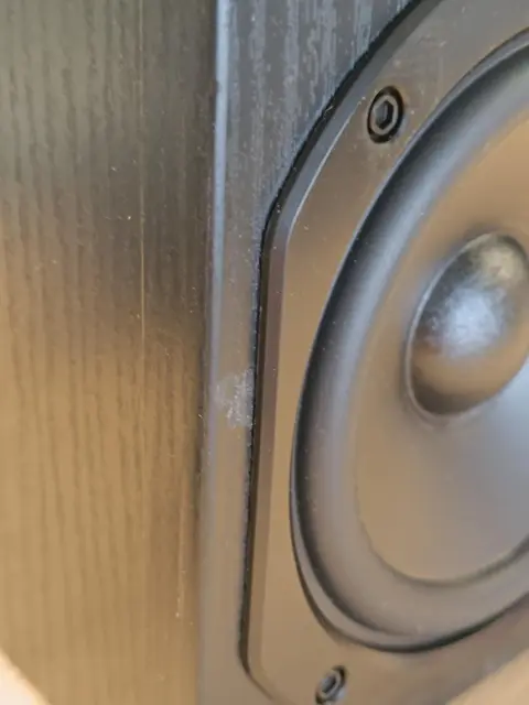 Poškodovana mrežica levega zvočnika, manjša praska na samem zvočniku