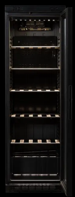 Hladilnik za vino Simfer SDS 385 DC1 PW vas bo navdušil s svojo veliko neto prostornino 358 litrov in s petimi lesenimi policami, kamor lahko shranite kar 60 buteljčnih steklenic (750 ml) vašega izbranega vina. Hladilnik je namenjen vsakdanji uporabo tako doma, kot v poslovnih prostorih, gostinskih lokalih, na prireditvah ali sejmih. Notranja temperatura hlajenja sega od +6 do + 20 °C in je primeren za hrambo vseh vrst vina. Hladilnik odlikujejo tudi LED osvetlitev, dvojna zasteklitev vrat, ventilacijski način hlajenja in po višini nastavljive nogice.