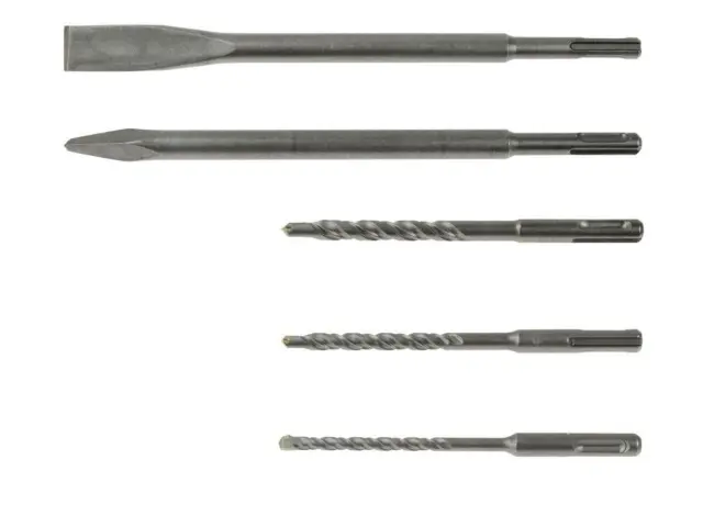 set vključuje glavo SDS + in hitro sprostitveno glavo, komplet svedrov in dleta ter mast