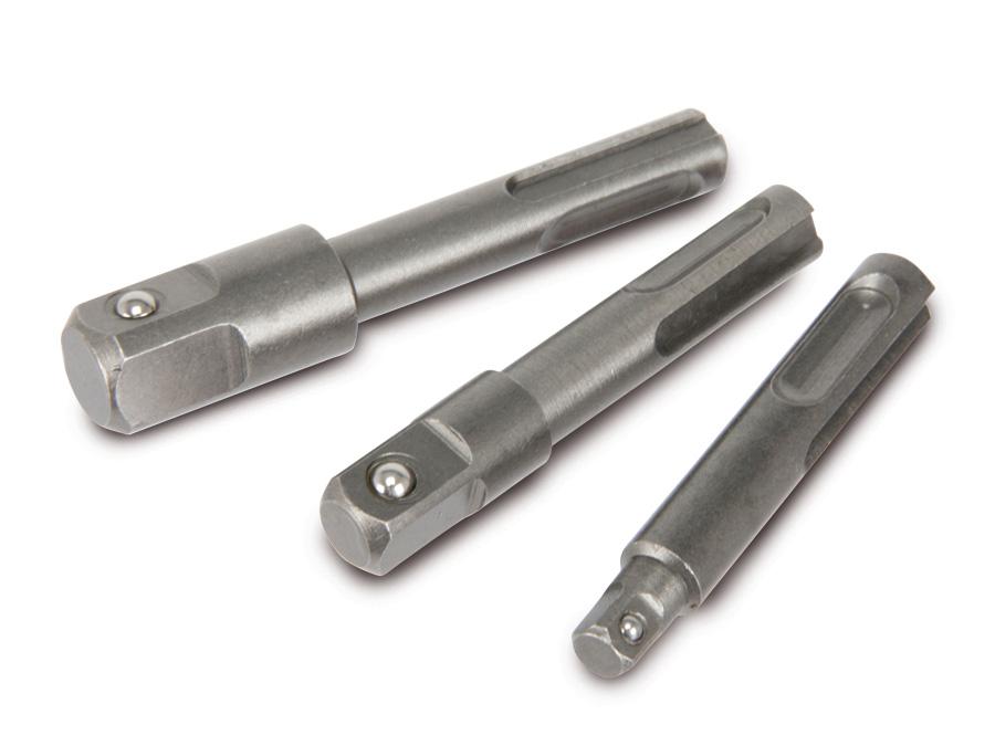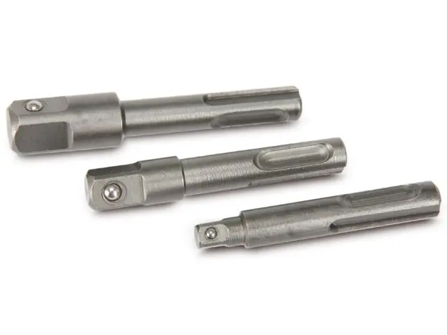 S temi adapterji lahko uporabite svoje obstoječe vstavke vijačnih ključev v vrtalnikih s svedrom vijaka SDS Plus. 3 adapterji za vse običajne ključe. – 1 adapter 1/4 “(6,35 mm) – 1 adapter 3/8” (9,5 mm) – 1 adapter 1/2 “(12,7 mm