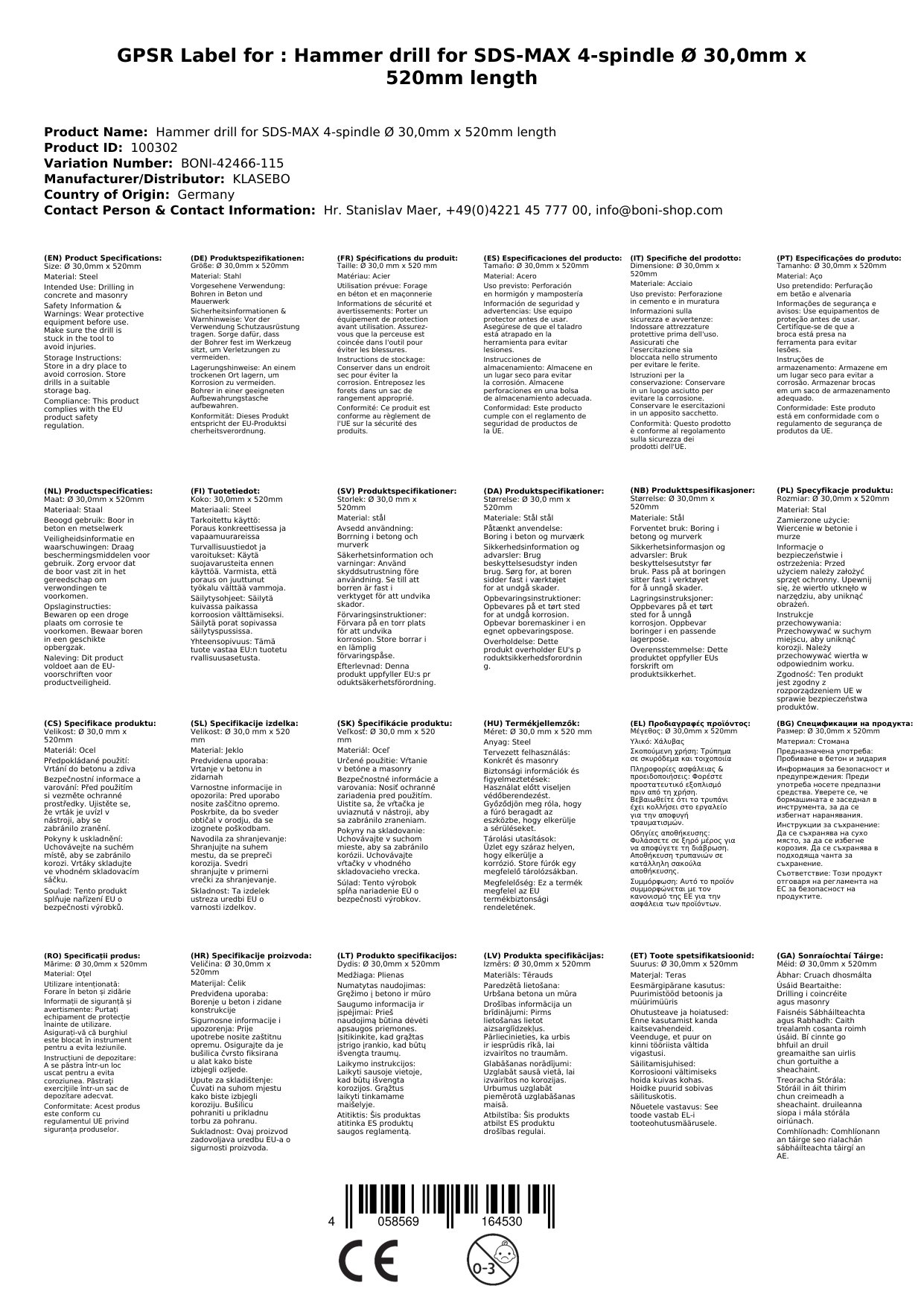 Ta kladivni vrtalnik za SDS-MAX z 4 rezili, premera 30,0 mm in dolžine 520 mm je zasnovan za profesionalno uporabo. Simetrična oblika glave zagotavlja precizno vrtanje in zanesljivo centriranje v luknji, kar olajša delo pri zahtevnih materialih.