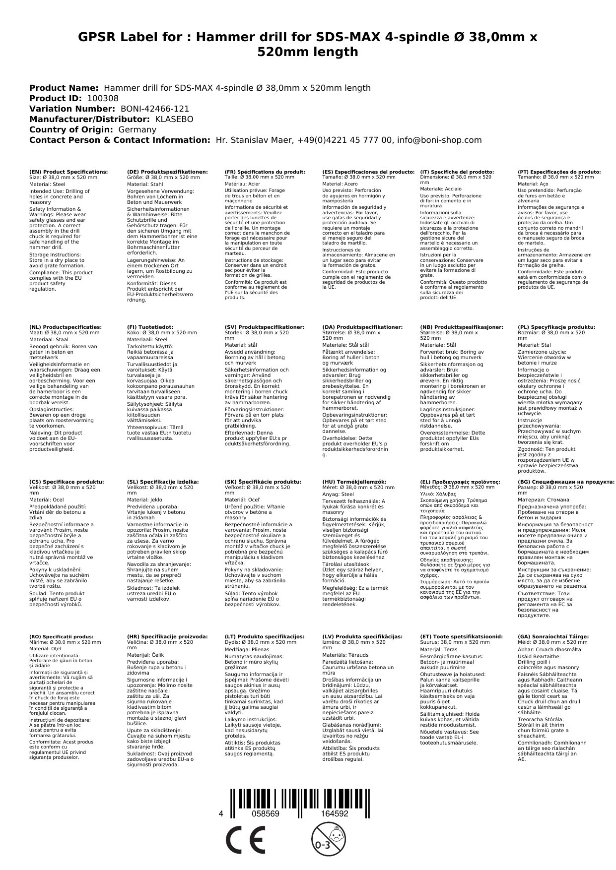 SDS Max udarni sveder 38mm s 4 rezili za beton in kamen, robusten in natančen