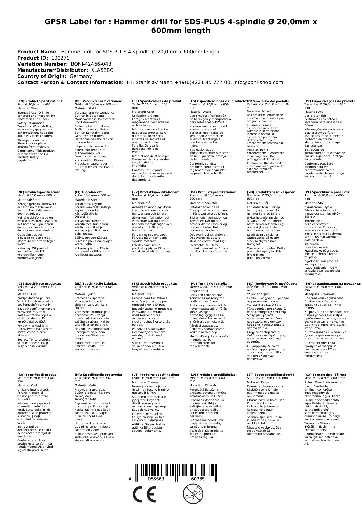SDS-Plus udarni sveder 20 mm 4-rezalni za beton, kamen in zidove