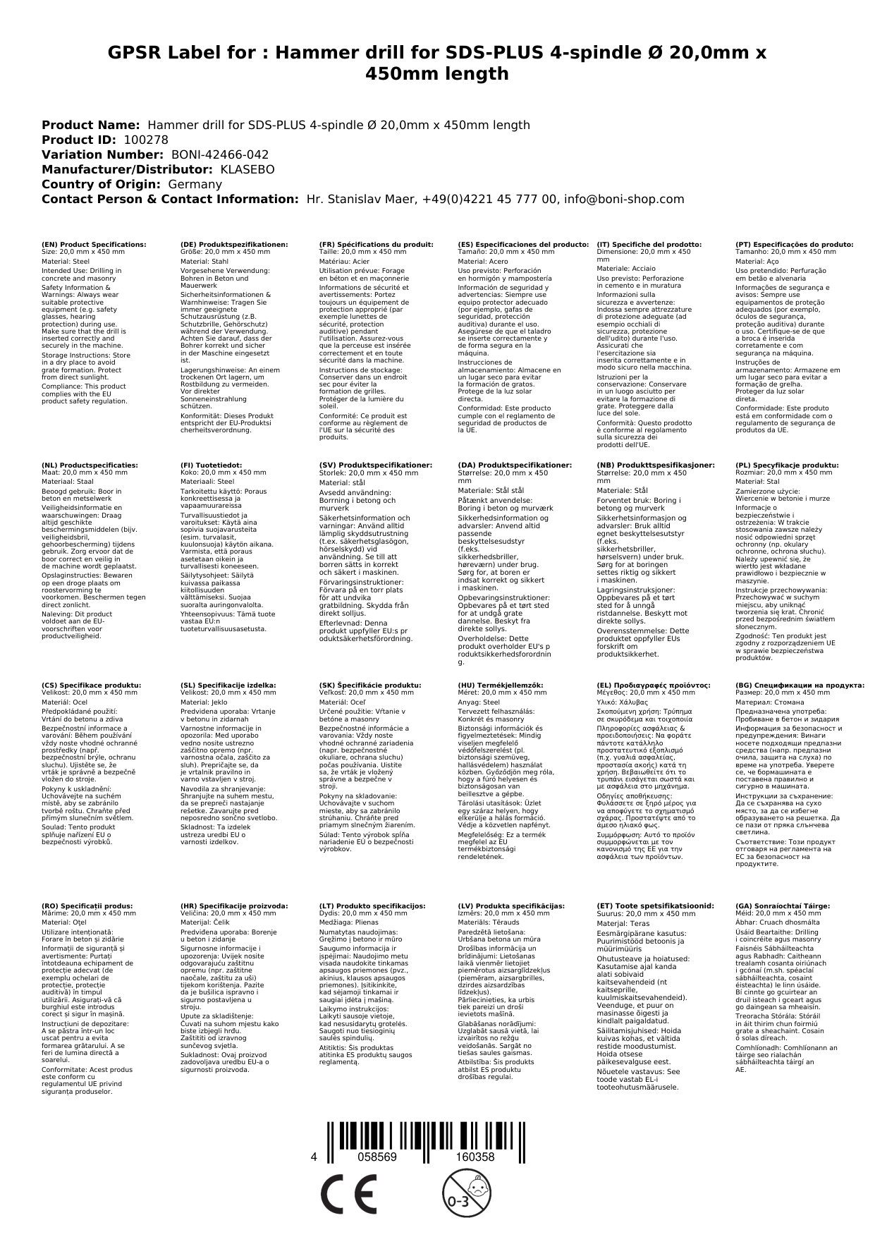 SDS Plus udarni sveder 20mm x 450mm s štirimi rezili za beton, kamen in zid