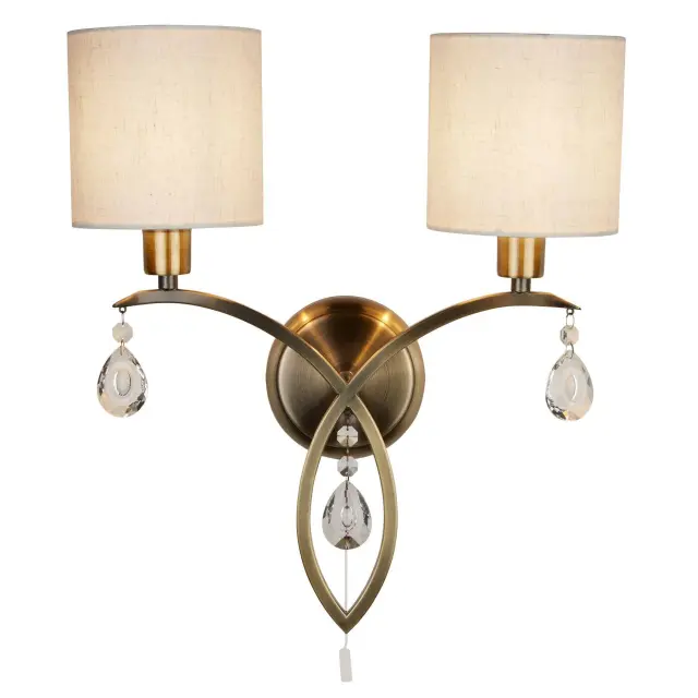 Searchlight Alberto Notranja stenska svetilka z 2 lučema, starinska medenina s kristali in senčniki, E14