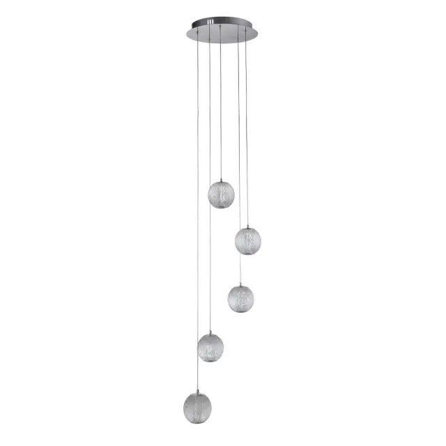 Searchlight Allure 5-lučna večnamenska viseča svetilka, kromirana, prozoren akril