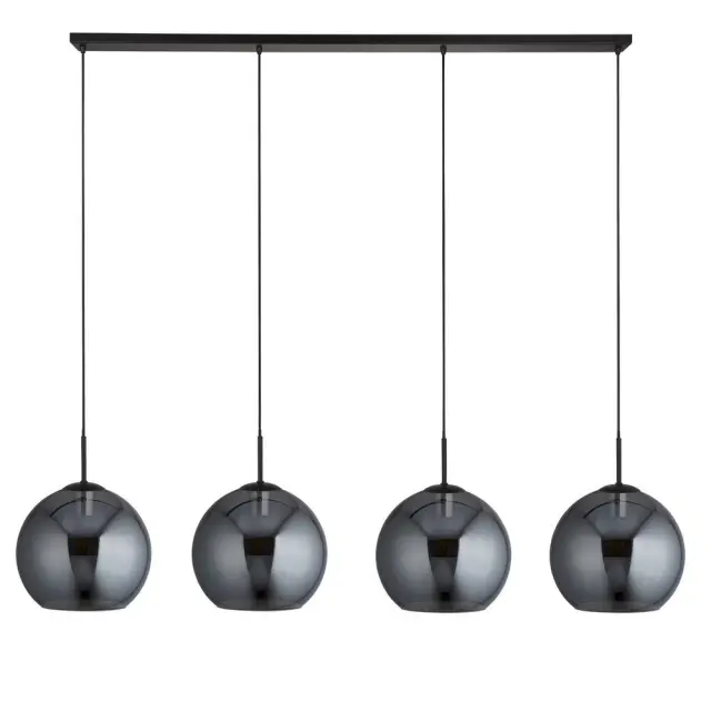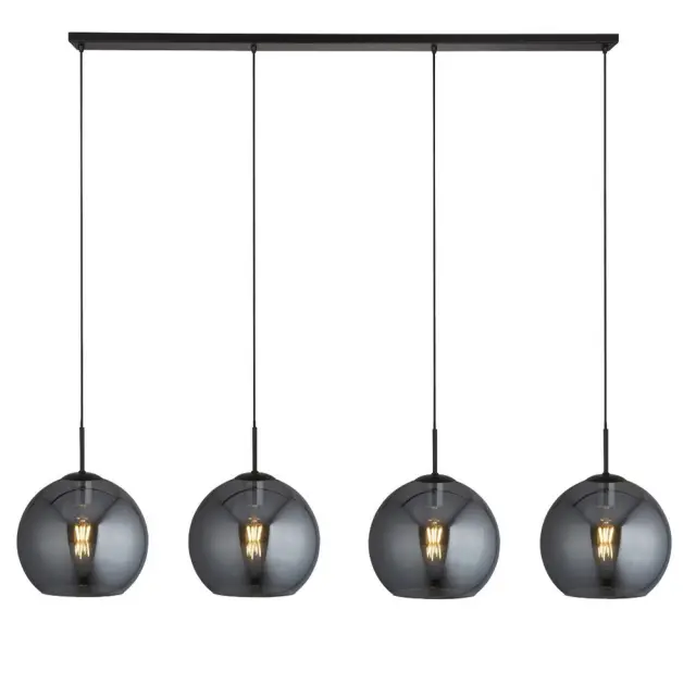 Searchlight Amsterdam 4 svetle mat črne stropne viseče svetilke z okroglimi dimljenimi steklenimi senčili