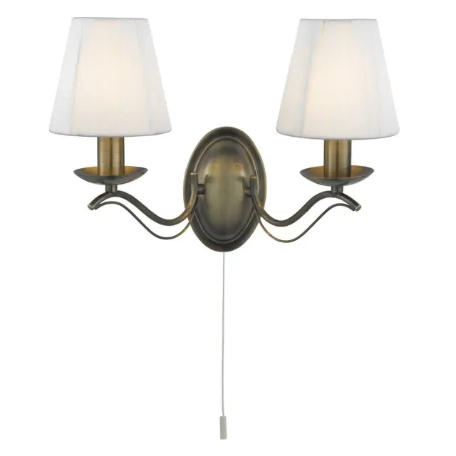 Searchlight Andretti Stenska svetilka za notranjo uporabo, 2 sveči, starinska medenina, s senčniki, E14
