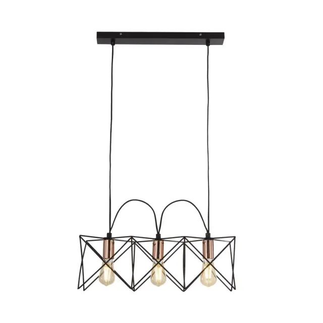 Searchlight Anthea 3-svetlobni stropni obesek s črnim okvirjem in bakrenimi detajli