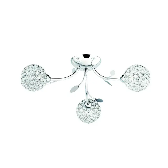 Searchlight Bellis Stropna svetilka s 3-krakim, pol-vgradnim večkrakim cvetličnim motivom, kromirana in steklena, G9
