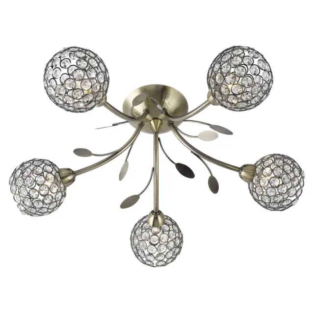Searchlight Bellis Stropna svetilka s 5 delno vgradnimi lučmi, več krakov, antična medenina in steklo, G9