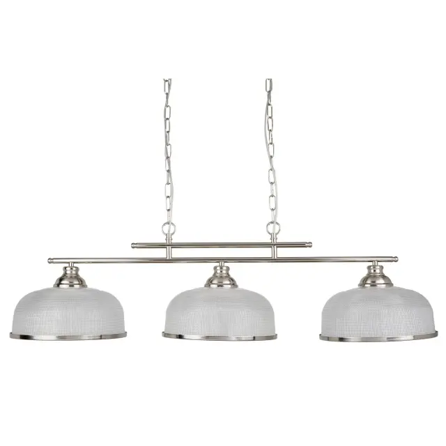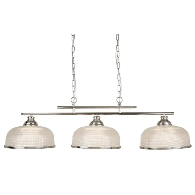 Searchlight Bistro Stropna svetilka s 3 lučmi, satenasto srebrna, bela s steklenimi senčniki, E27