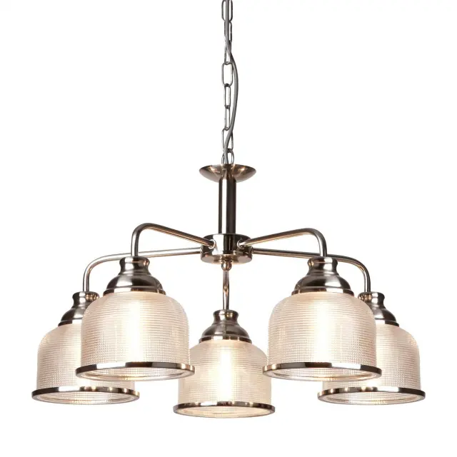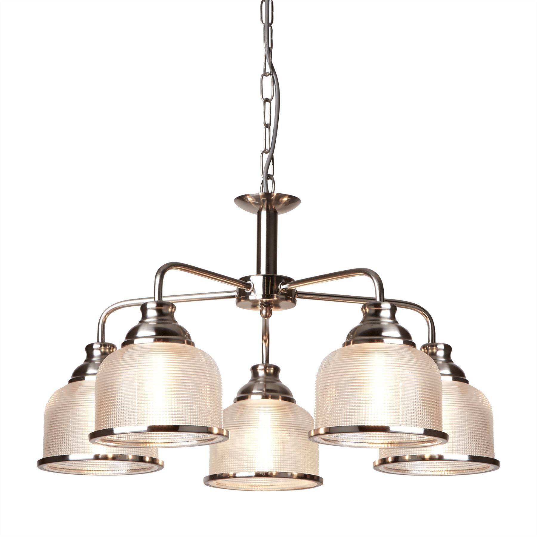 Searchlight Bistro Stropna svetilka s 5 lučmi in več kraki, srebrna, bela, E27