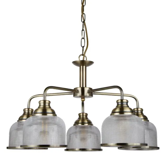 Searchlight Bistro Stropna svetilka s 5 lučmi in več ročicami, bela, antična medenina, E27