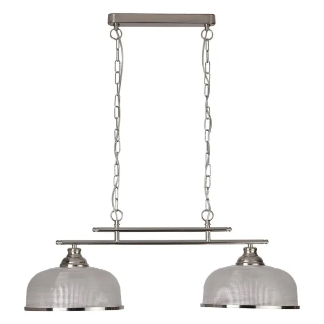 Searchlight Bistro Stropna svetilka z 2 svetilkama, satenasto srebrna, bela s steklenimi senčniki, E27