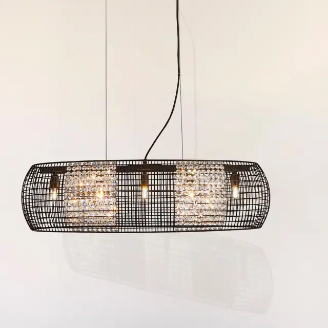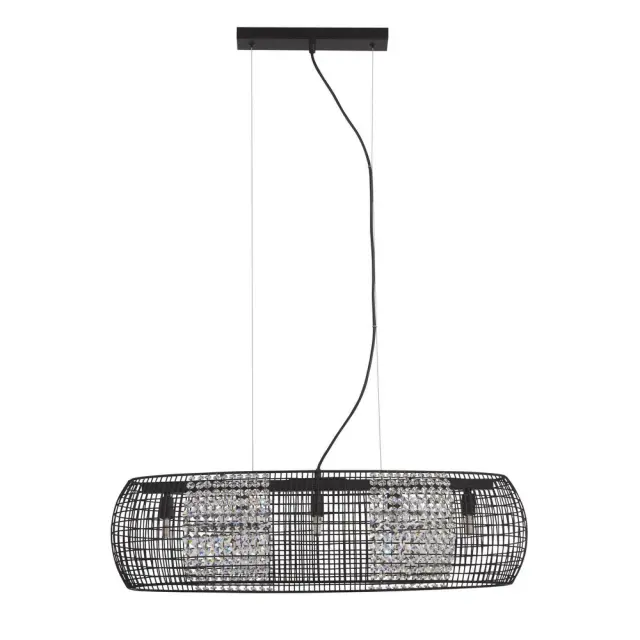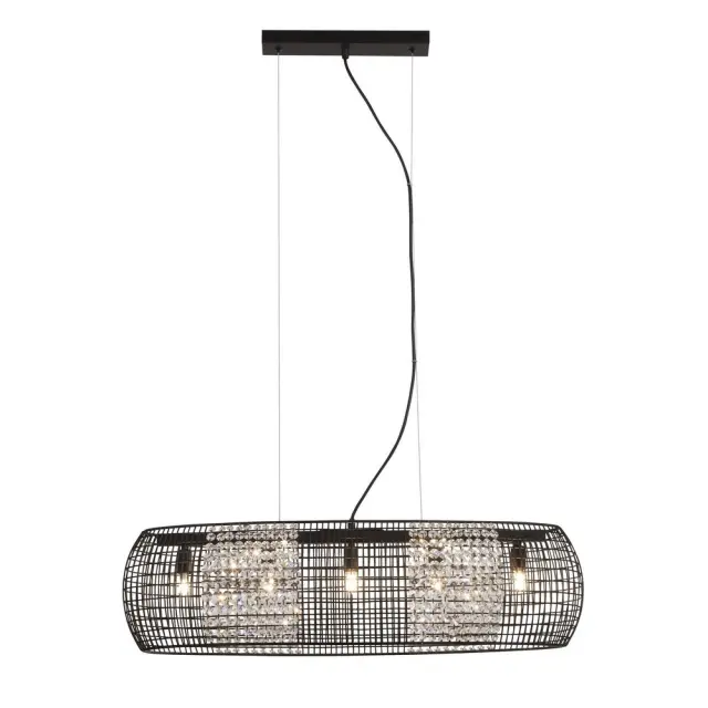 Searchlight Cage 5-svetla črna ovalna stropna viseča svetilka s kristalnimi steklenimi ploščami