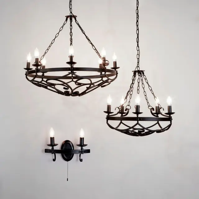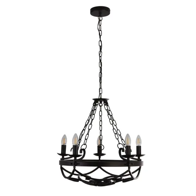 Searchlight Cartwheel Stropna viseča svetilka s 5 lučkami v obliki sveče, črna