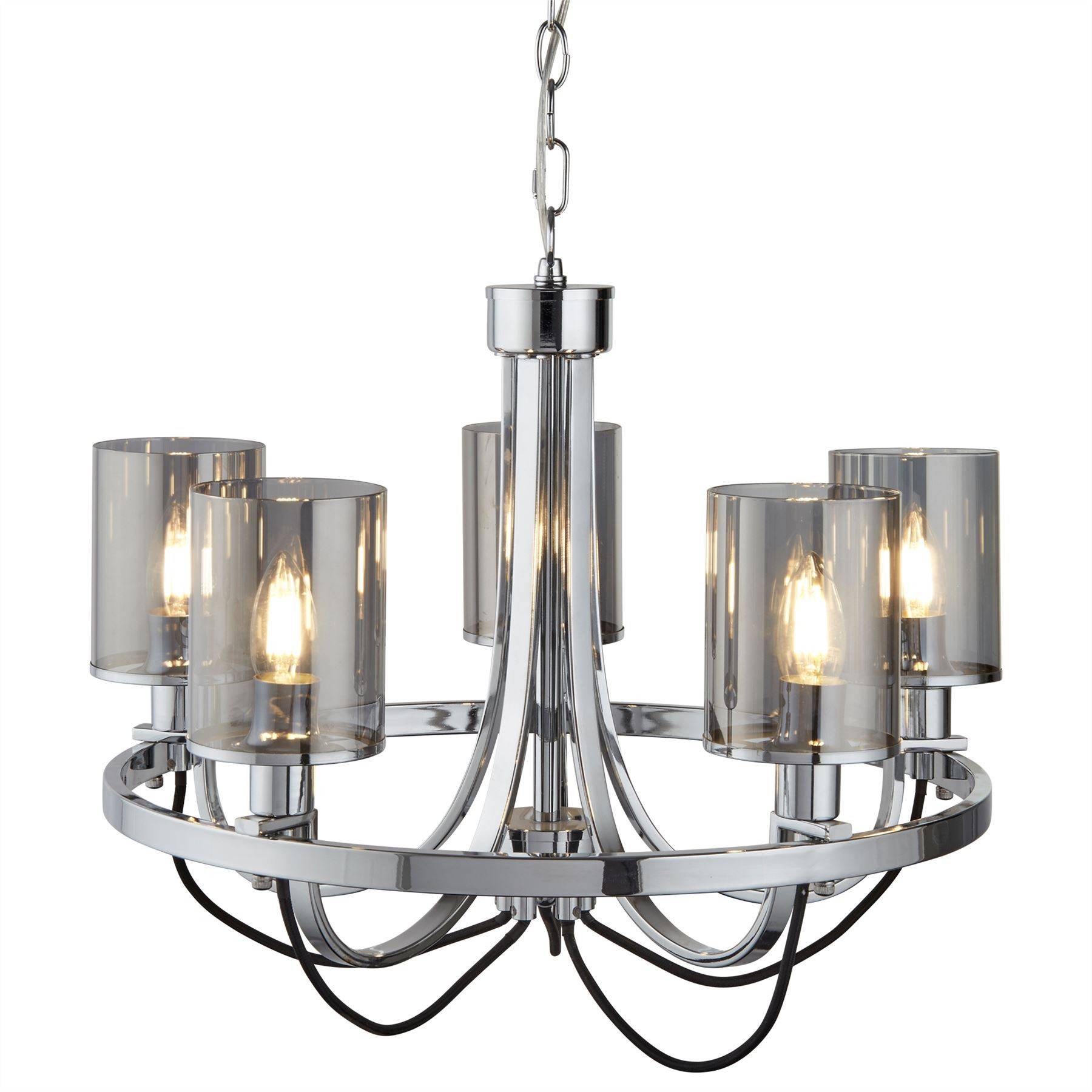 Searchlight Catalina Stropna svetilka s 5 lučmi in več ročicami, kromirana, dimljena, steklena, E14