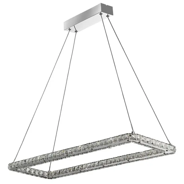 Searchlight Clover Pravokotna viseča svetilka, krom, prozorno steklo
