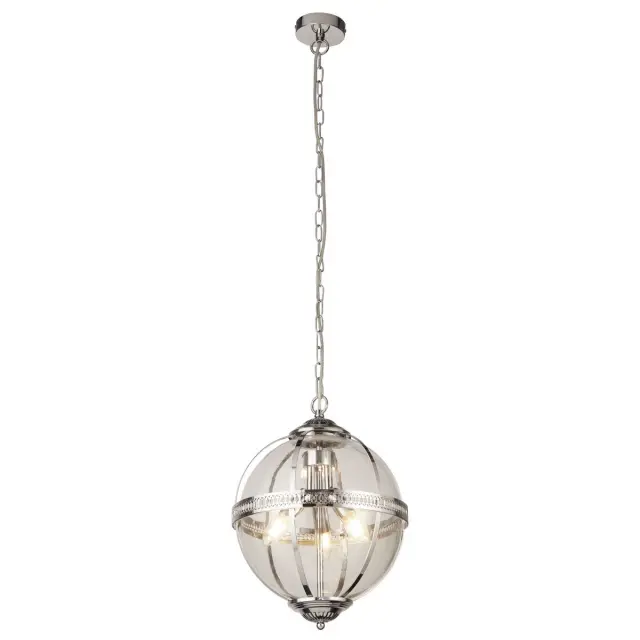 Searchlight Coronet Viseča svetilka s 3 lučmi, kromirana, steklena