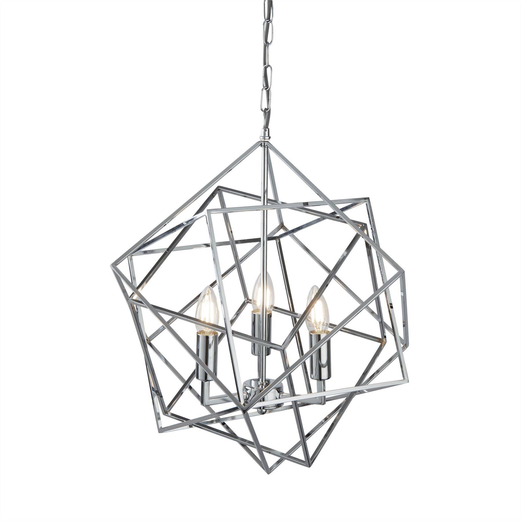 Searchlight Cube Stropna svetilka s 3 lučmi, kromirana, E14