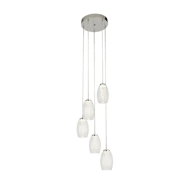 Searchlight Cyclone Viseča svetilka s 5 lahkimi kapljicami, prozorno steklo 3000K