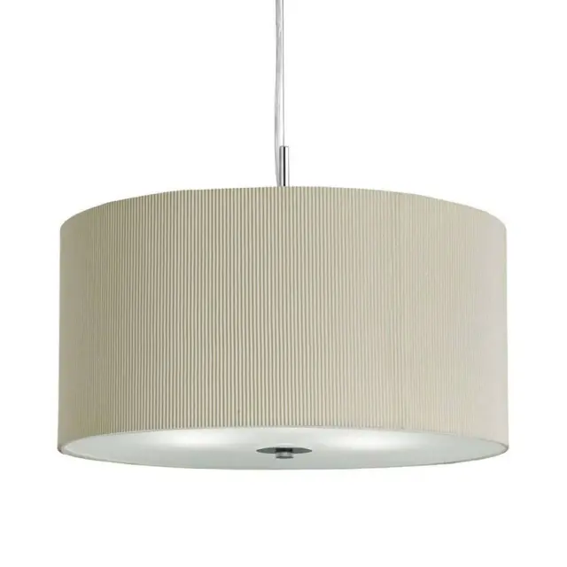 Searchlight Drum Pleat Stropna svetilka s 3 lučmi, kromirana, kremna, s steklenim difuzorjem in senčnikom, E27
