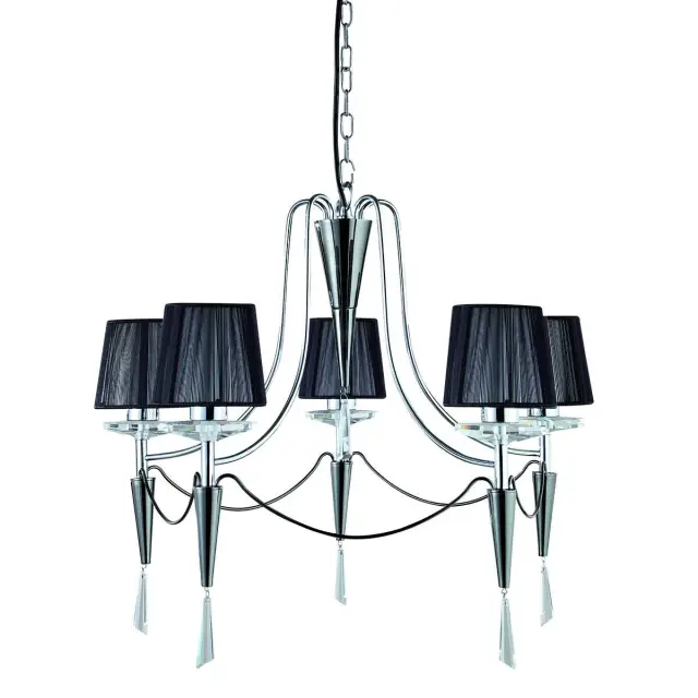 Searchlight Duchess Stropna svetilka s 5 lučmi in več kraki, kromirana, črna, kromirana z senčniki, G9