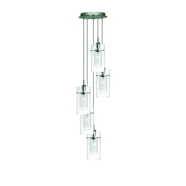 Searchlight Duo 1 Viseča svetilka s 5 spiralnimi grozdi, kromirana, steklo, E14