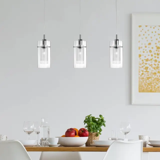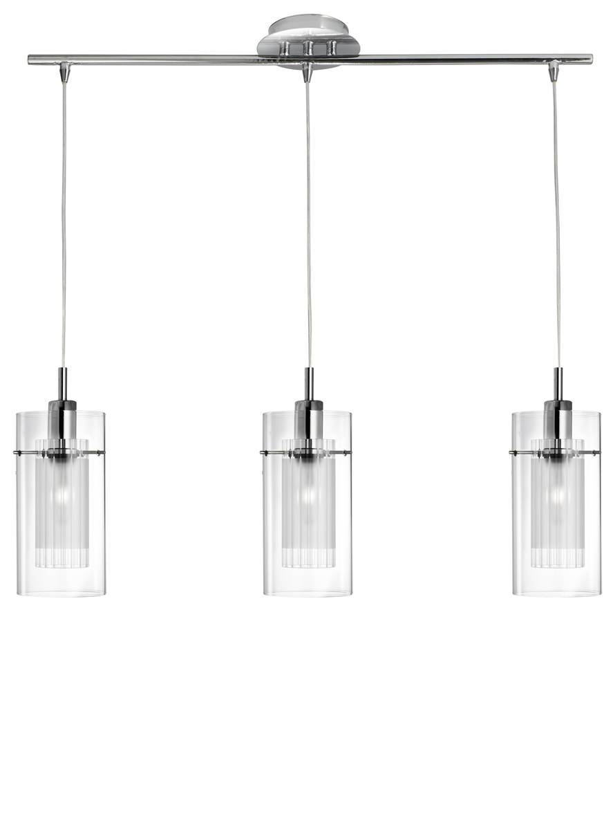 Searchlight Duo 1 Viseča svetilka s 3 lučmi, kromirana, steklo, E14