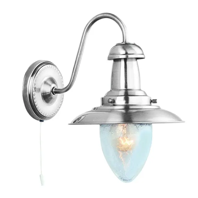Searchlight Fisherman Stenska svetilka z 1 lučjo, satenasto srebrna, s senčnikom iz semenskega stekla, E27